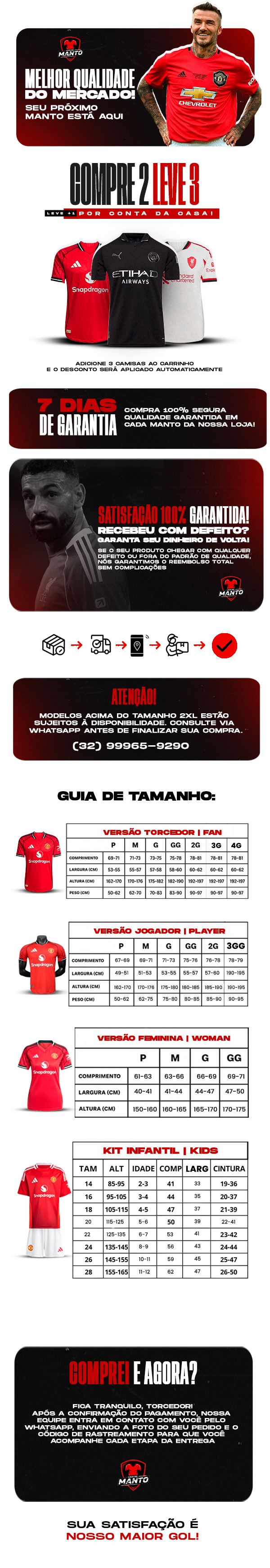 Nossos produtos são réplicas tailandesas com qualidade idêntica à original, confeccionados com o mesmo tecido, bordados, costuras e etiquetas, sendo realmente imperceptível a diferença.